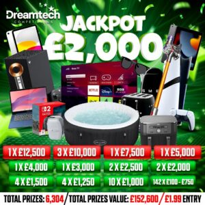 The live draw will take place on the DreamTech Competitions Ltd Facebook page using Google’s random number generator to select the winning ticket number from all Entrants.