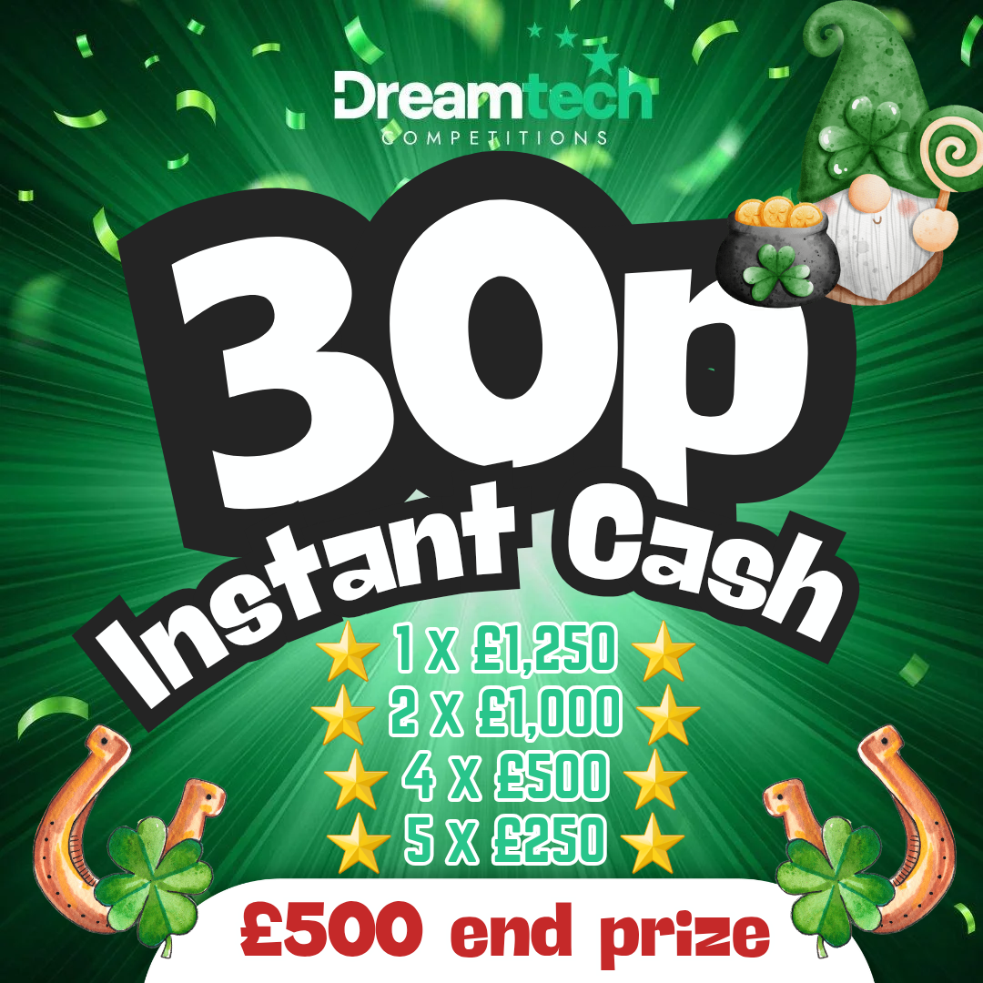 With this comp it’s ONLY 30p to enter…..every ticket purchased counts towards the £500 end prize jackpot + there’s instant prizes of upto £1,250 that can be won INSTANTLY!! Good luck 🍀