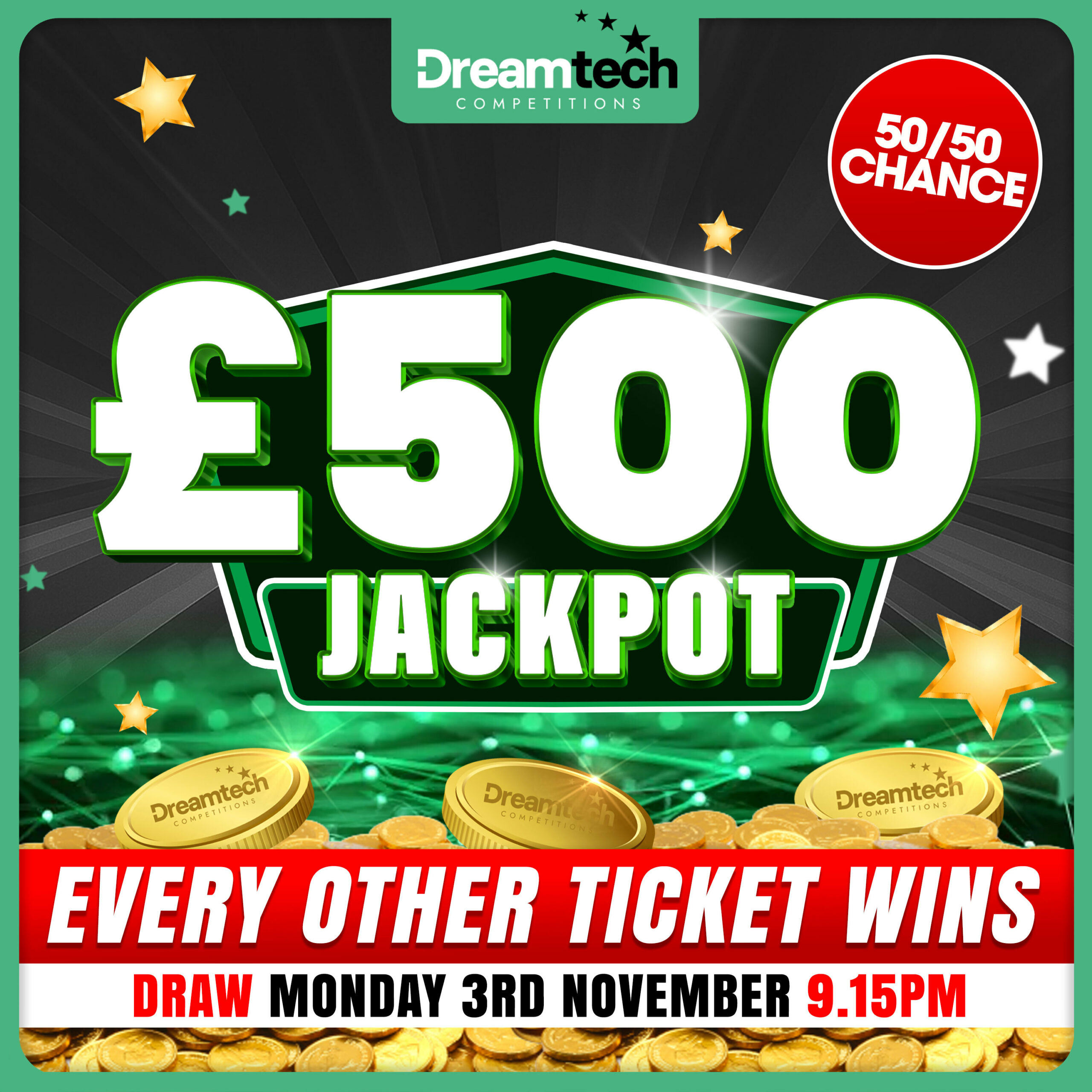 The live draw will take place on the DreamTech Competitions Ltd Facebook page using Google’s random number generator to select the winning ticket number from all Entrants.