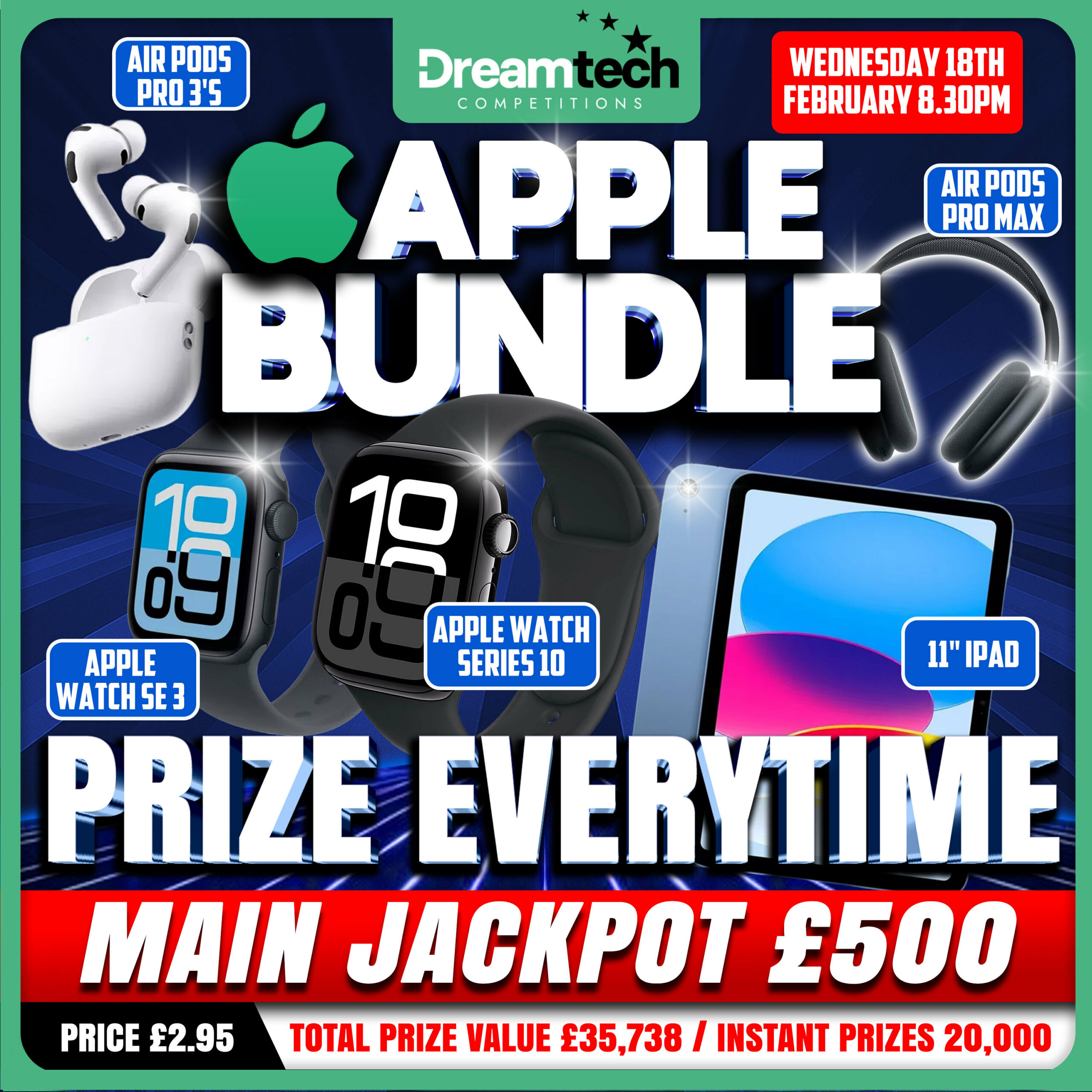 Apple Tech Prize Everytime | 20,000 Prizes | £500 Jackpot