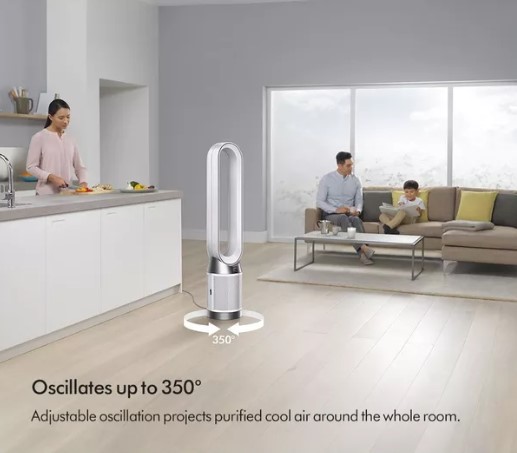 – It oscillates 350º so it can cover the whole room from corner to corner