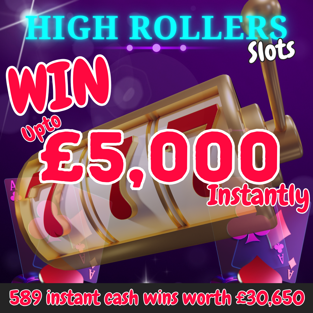 HIGH ROLLERS Slots | WIN Upto £5,000 INSTANTLY + £500 Jackpot | 10 x £1,000 – £5,000 Jackpot Instants |
