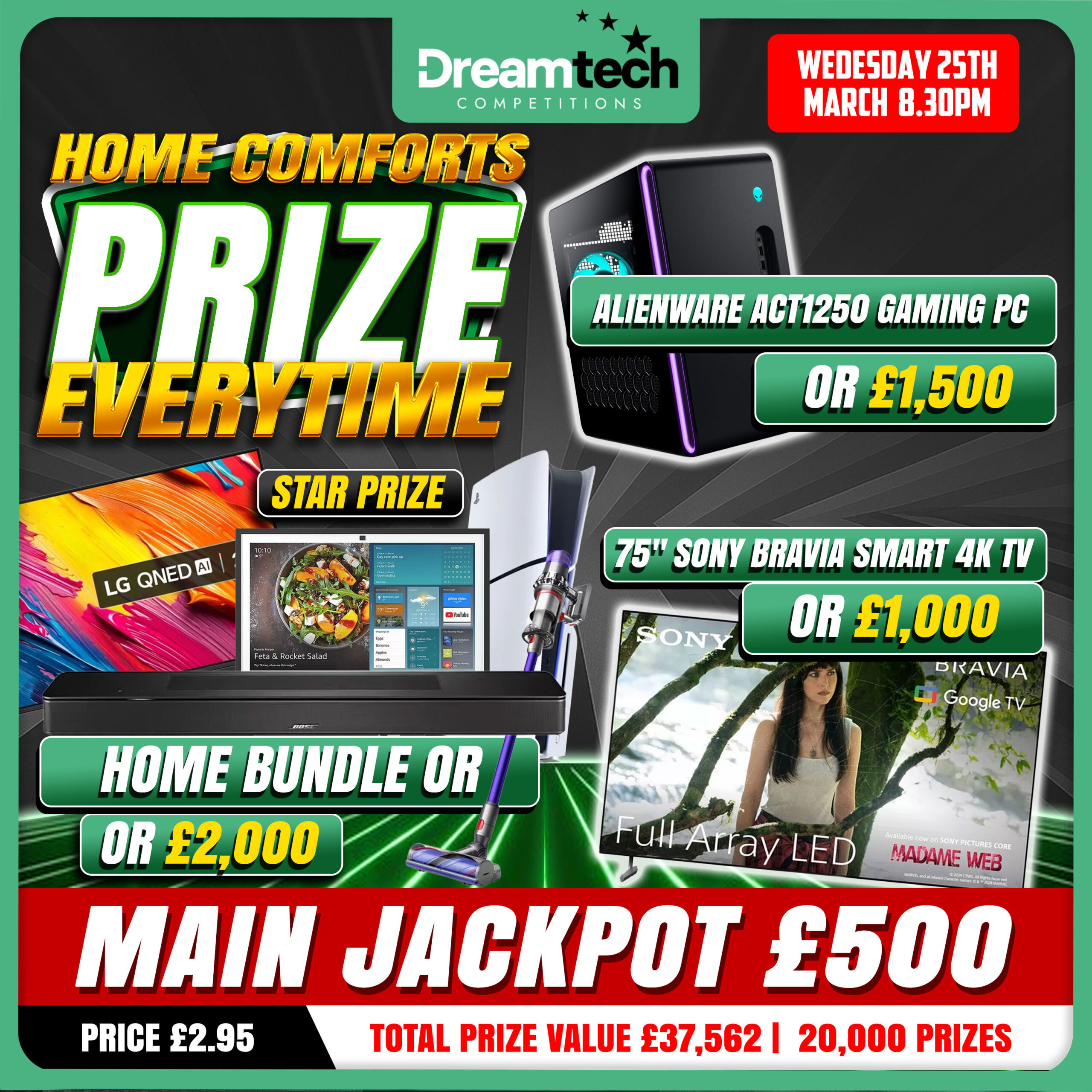 You must answer the competition question correctly to be entered into the live draw. Incorrect entries will not be notified or entered into the live draw.