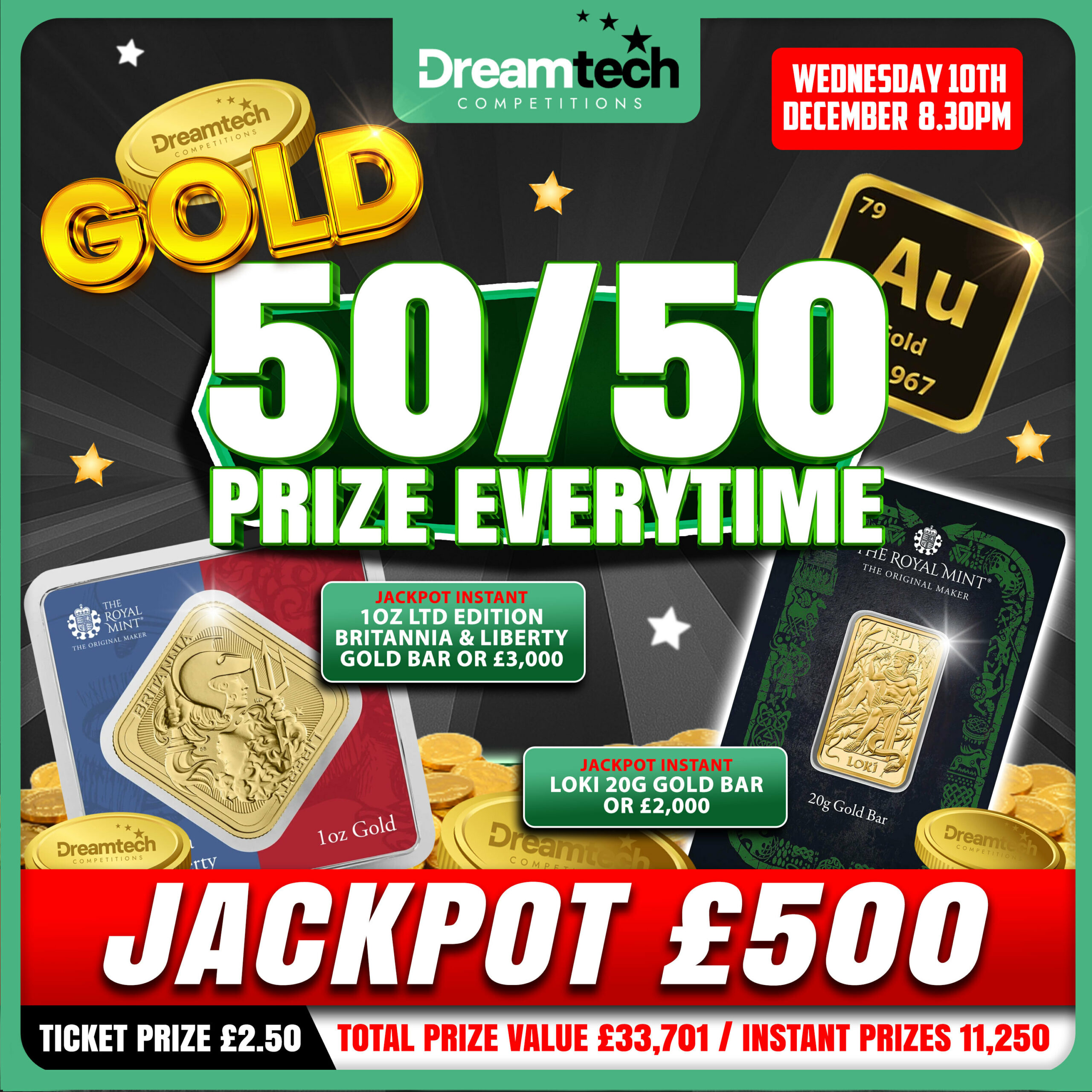 The live draw will take place on the DreamTech Competitions Ltd Facebook page using Google’s random number generator to select the winning ticket number from all Entrants.