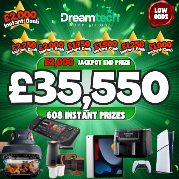 The live draw will take place on the DreamTech Competitions Ltd Facebook page using Google’s random number generator to select the winning ticket number from all Entrants.