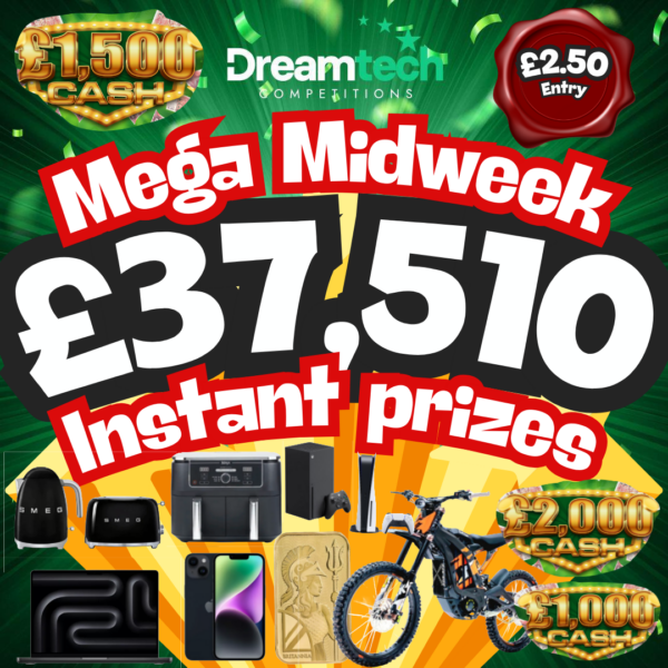 The live draw will take place on the DreamTech Competitions Ltd Facebook page using Google’s random number generator to select the winning ticket number from all Entrants.