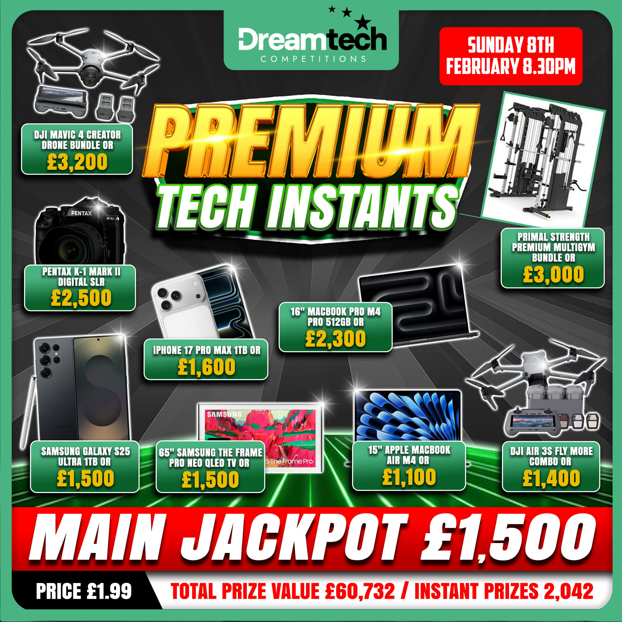 PREMIUM Tech £60k Instant WIN | 9 x £1,100 – £3,200 BIG WINS + £1,500 Jackpot