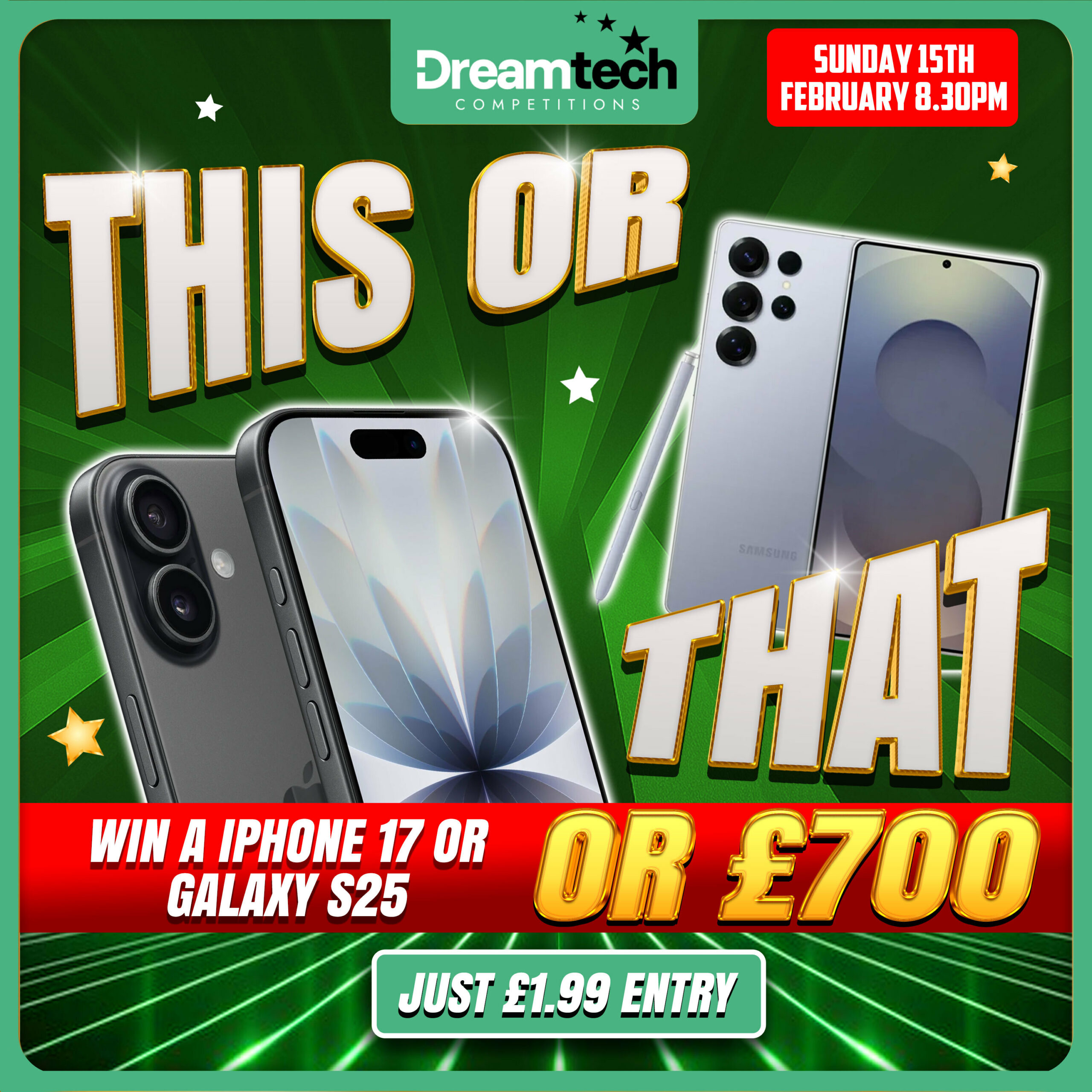 The live draw will take place on the DreamTech Competitions Ltd Facebook page using Google’s random number generator to select the winning ticket number from all Entrants.