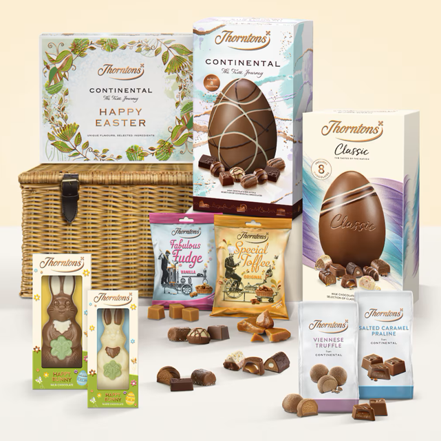 Enjoy an eggstra special Easter with our wonderful Eggstra Special Wicker Hamper! Featuring a fabulous array of delicious treats, hand-picked from our range, there’s something for everyone to enjoy. Go on a taste journey with our Continental chocolates, including a delicious milk chocolate egg or celebrate with our Classic chocolates paired with a large Classic Easter egg. Or why not add some fun with our milk and white chocolate Happy Bunnies and who can resist our Special Toffee and Fabulous Fudge, all beautifully presented in a wicker hamper… perfect as a statement gift or for sharing with family and friends this Easter.