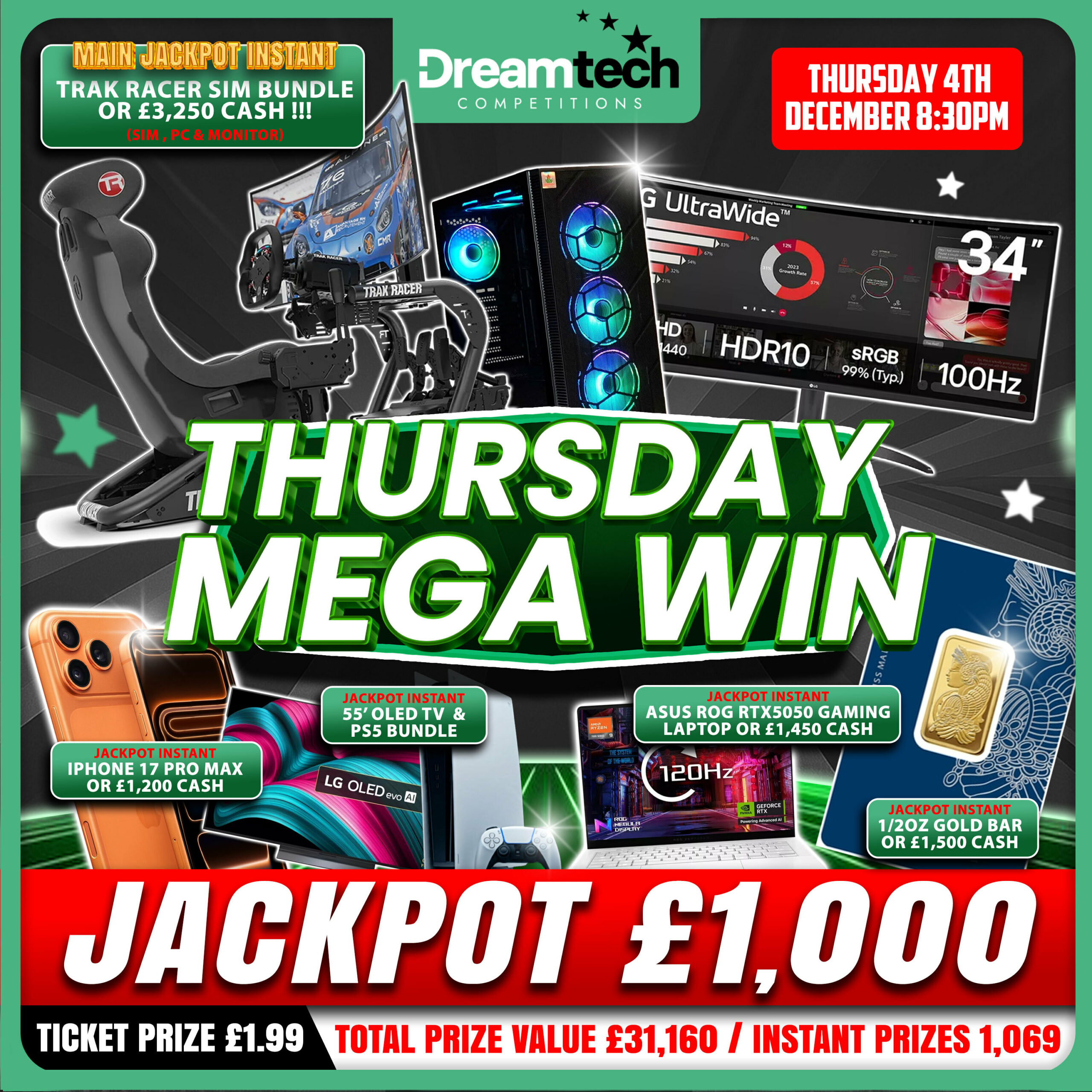 Thursday MEGA WIN | £31,160 in Prizes | £1,000 Jackpot | 1,069 Prizes!