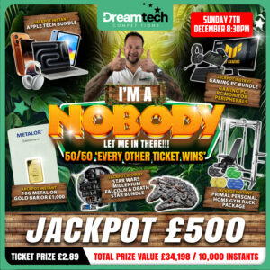 The live draw will take place on the DreamTech Competitions Ltd Facebook page using Google’s random number generator to select the winning ticket number from all Entrants.