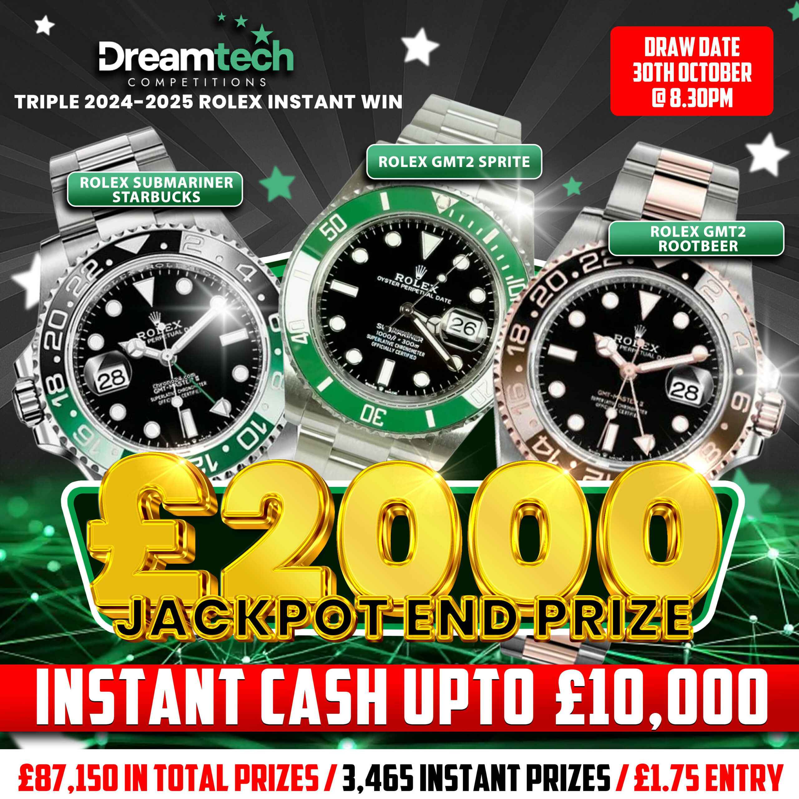 The live draw will take place on the DreamTech Competitions Ltd Facebook page using Google’s random number generator to select the winning ticket number from all Entrants.