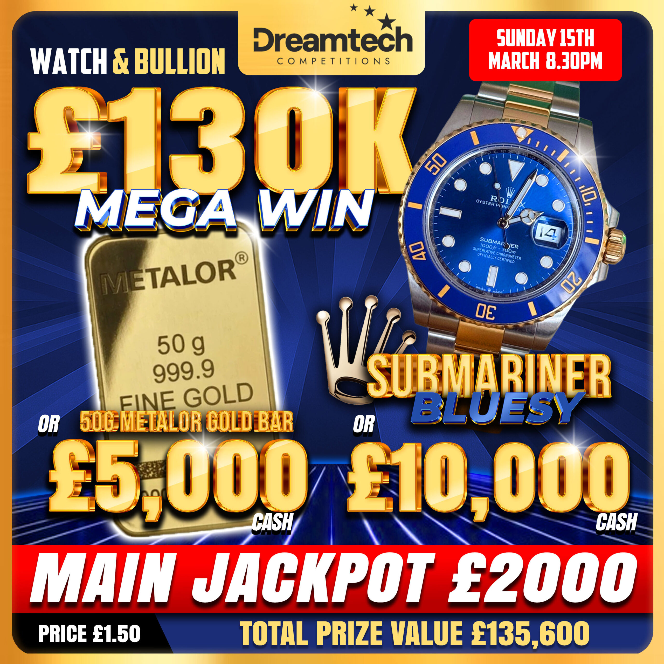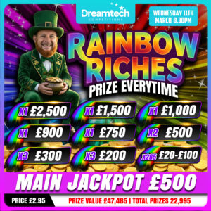 The live draw will take place on the DreamTech Competitions Ltd Facebook page using Google’s random number generator to select the winning ticket number from all Entrants.