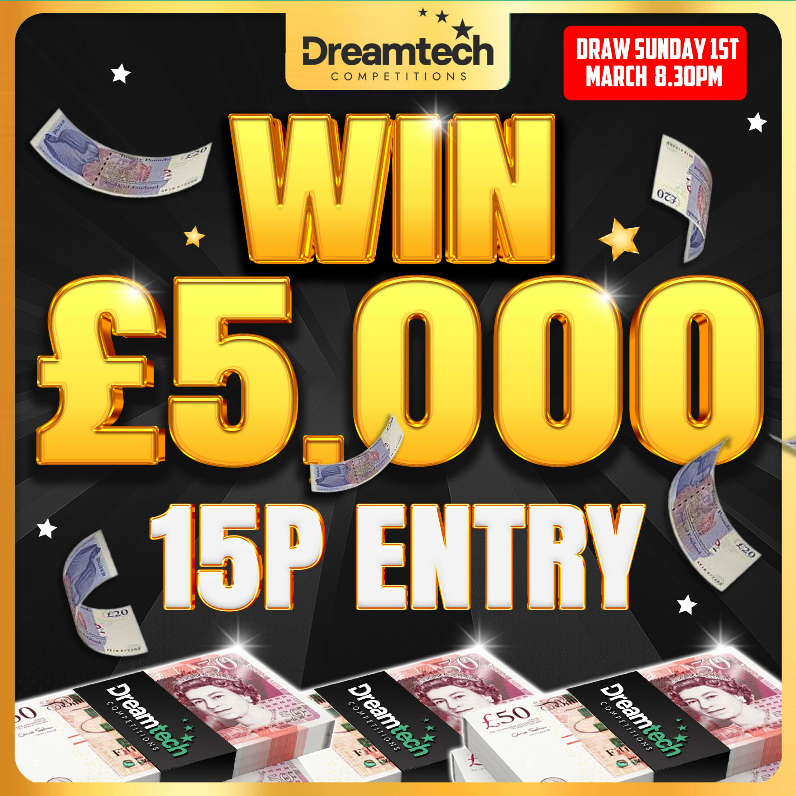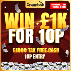 The live draw will take place on the DreamTech Competitions Ltd Facebook page using Google’s random number generator to select the winning ticket number from all Entrants.