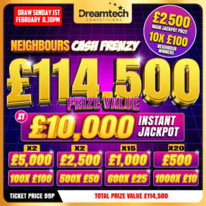 The live draw will take place on the DreamTech Competitions Ltd Facebook page using Google’s random number generator to select the winning ticket number from all Entrants.