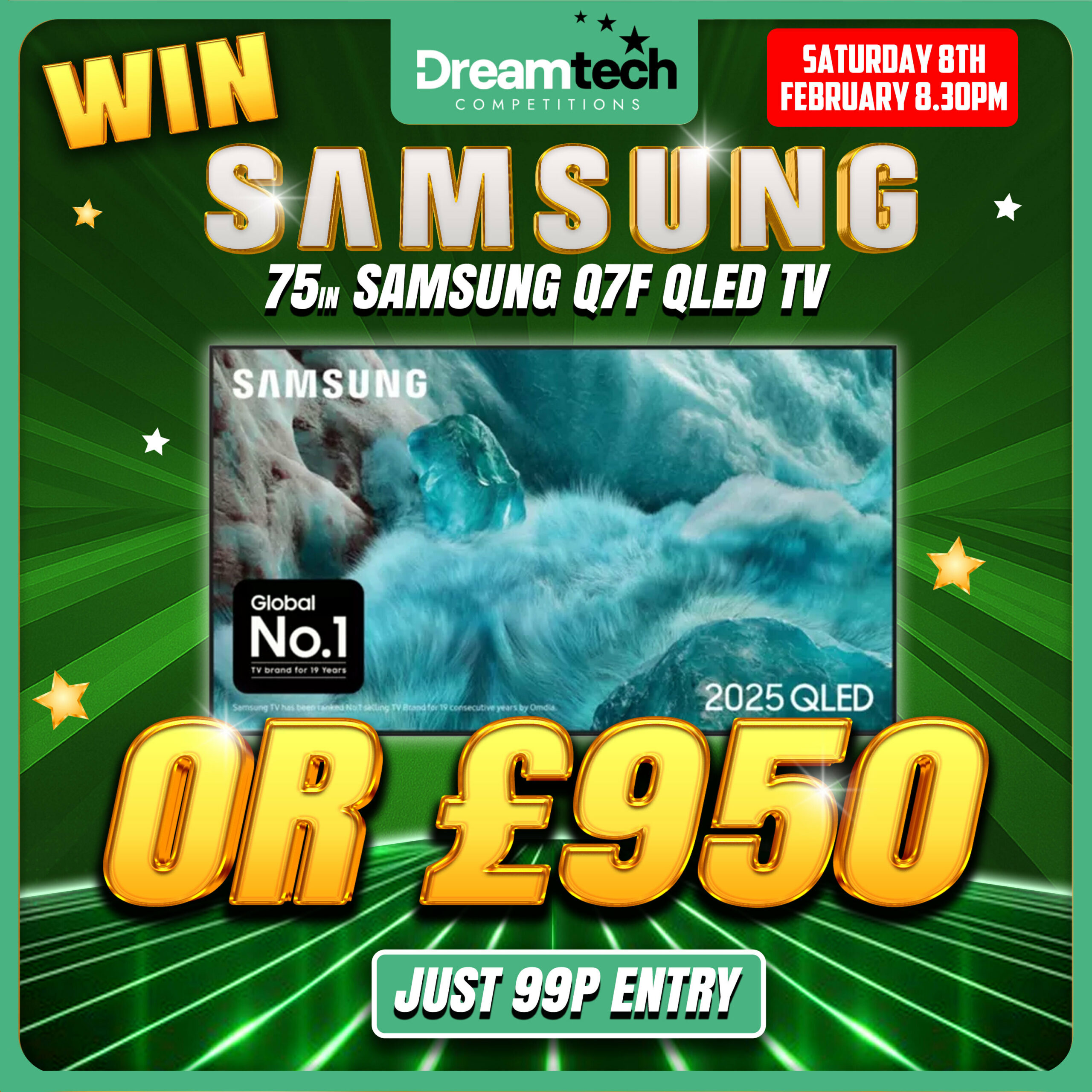WIN a 75″ Samsung Q7F QLED TV For Just 99p!