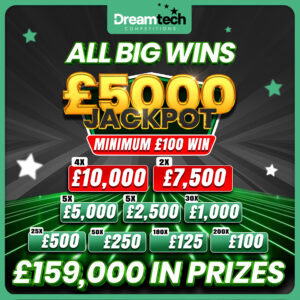 The live draw will take place on the DreamTech Competitions Ltd Facebook page using Google’s random number generator to select the winning ticket number from all Entrants.
