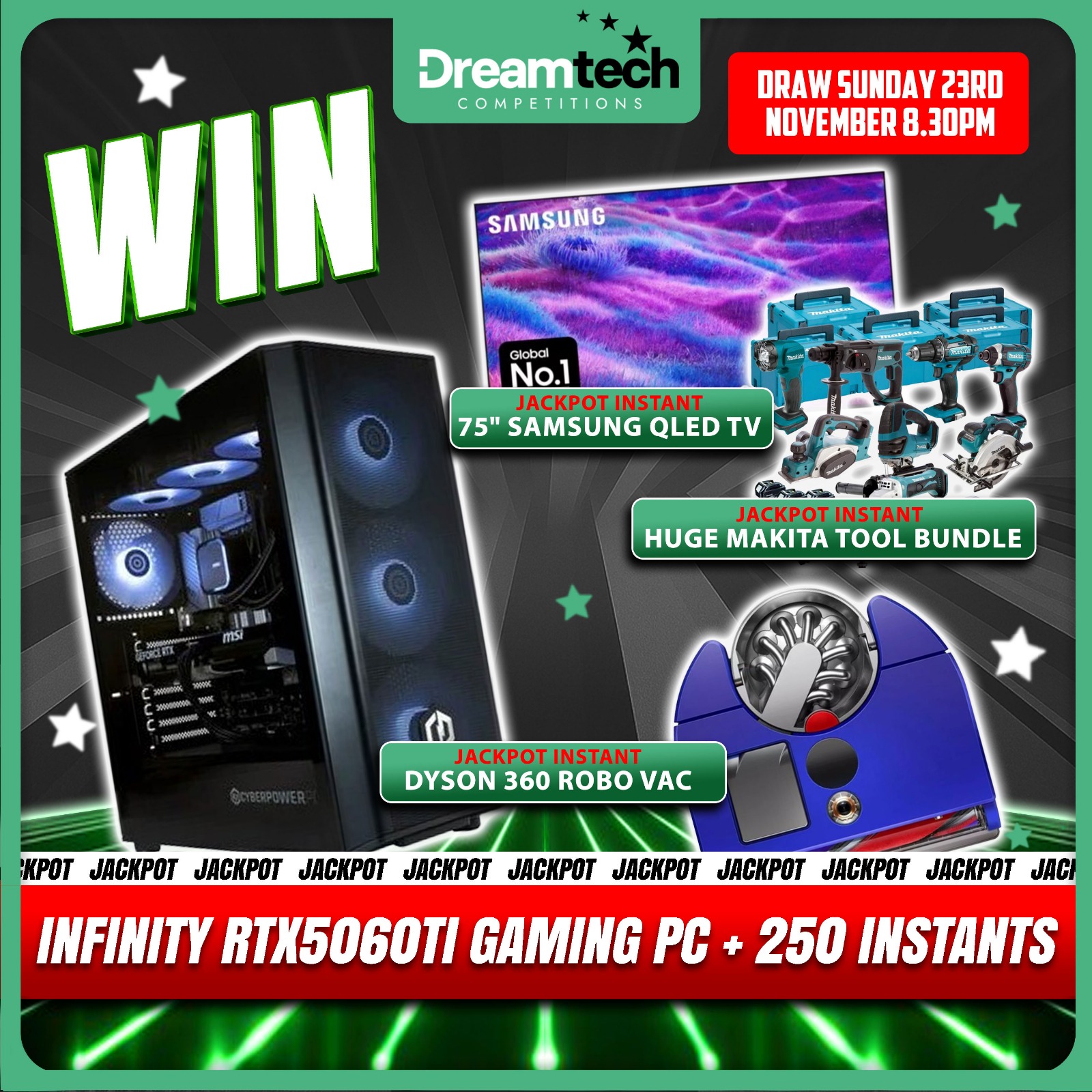 The live draw will take place on the DreamTech Competitions Ltd Facebook page using Google’s random number generator to select the winning ticket number from all Entrants.