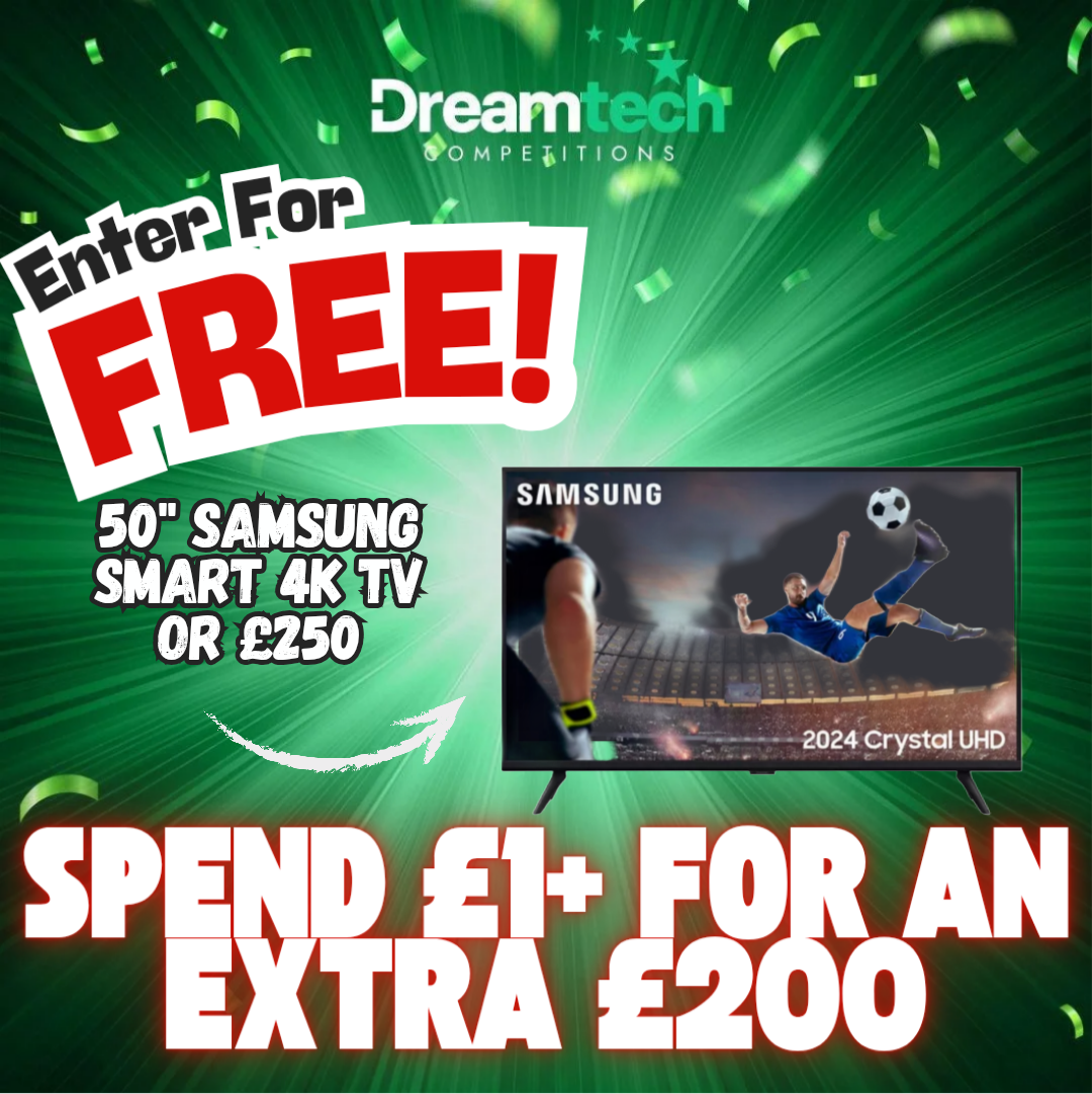 The live draw will take place on the DreamTech Competitions Ltd Facebook page using Google’s random number generator to select the winning ticket number from all Entrants.