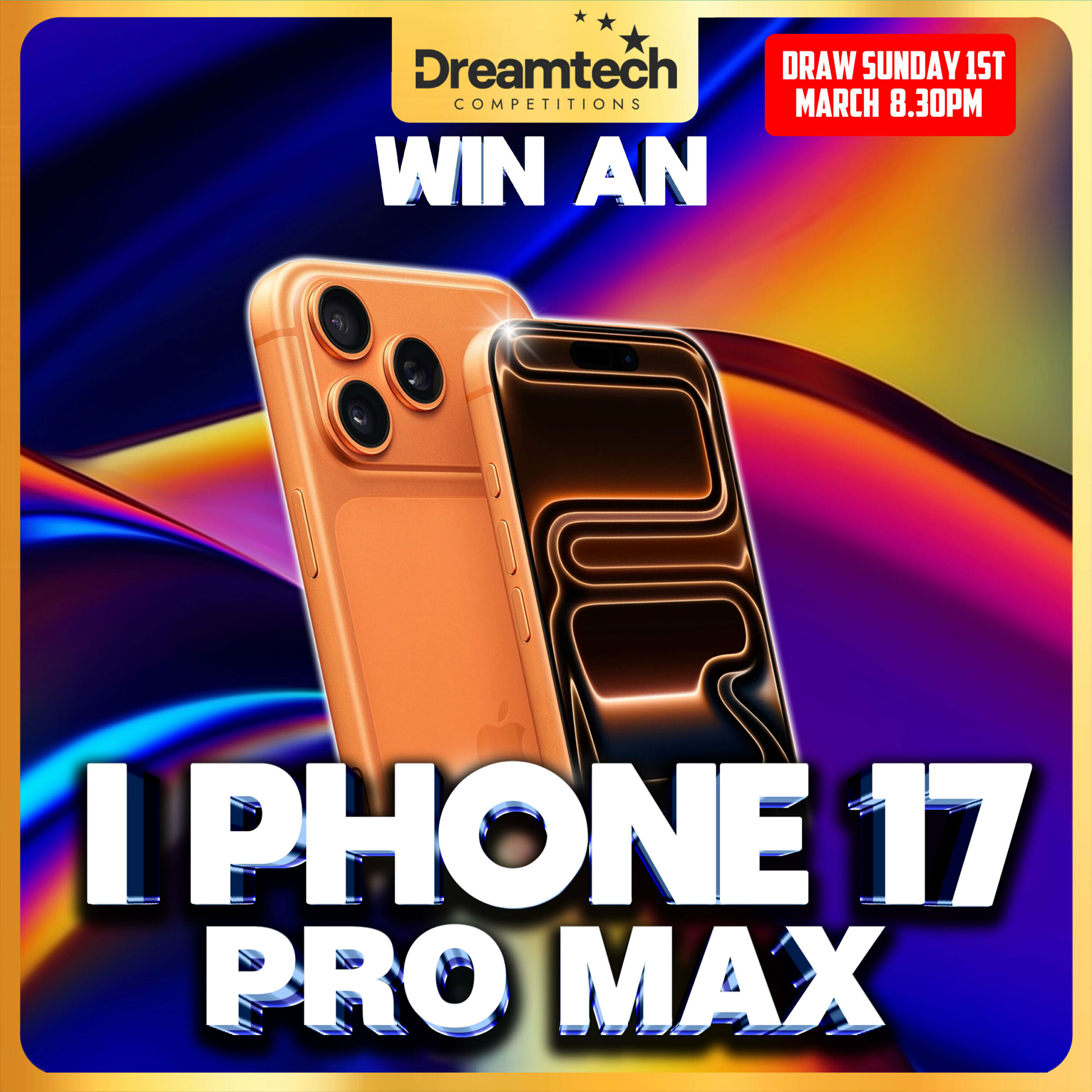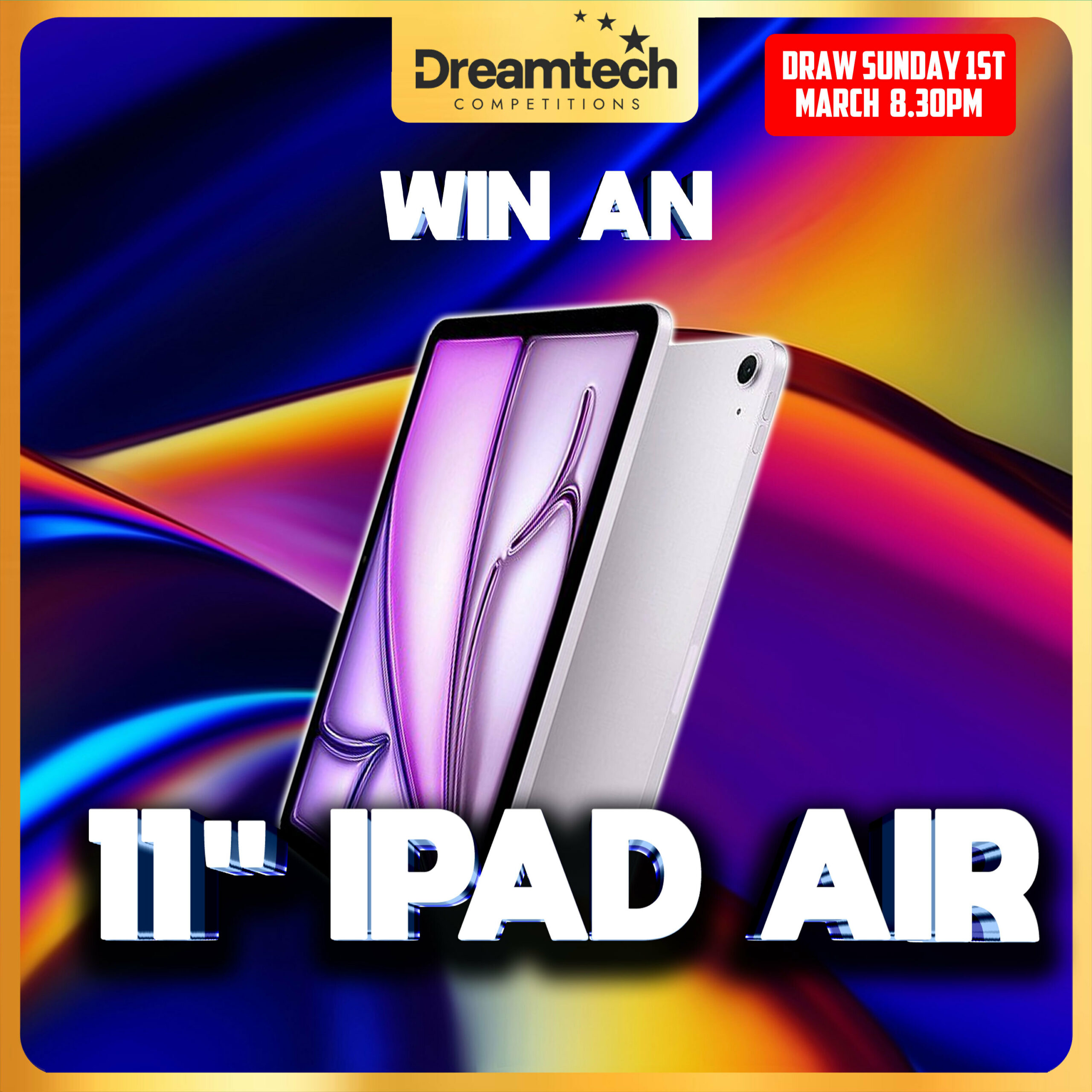 The live draw will take place on the DreamTech Competitions Ltd Facebook page using Google’s random number generator to select the winning ticket number from all Entrants.